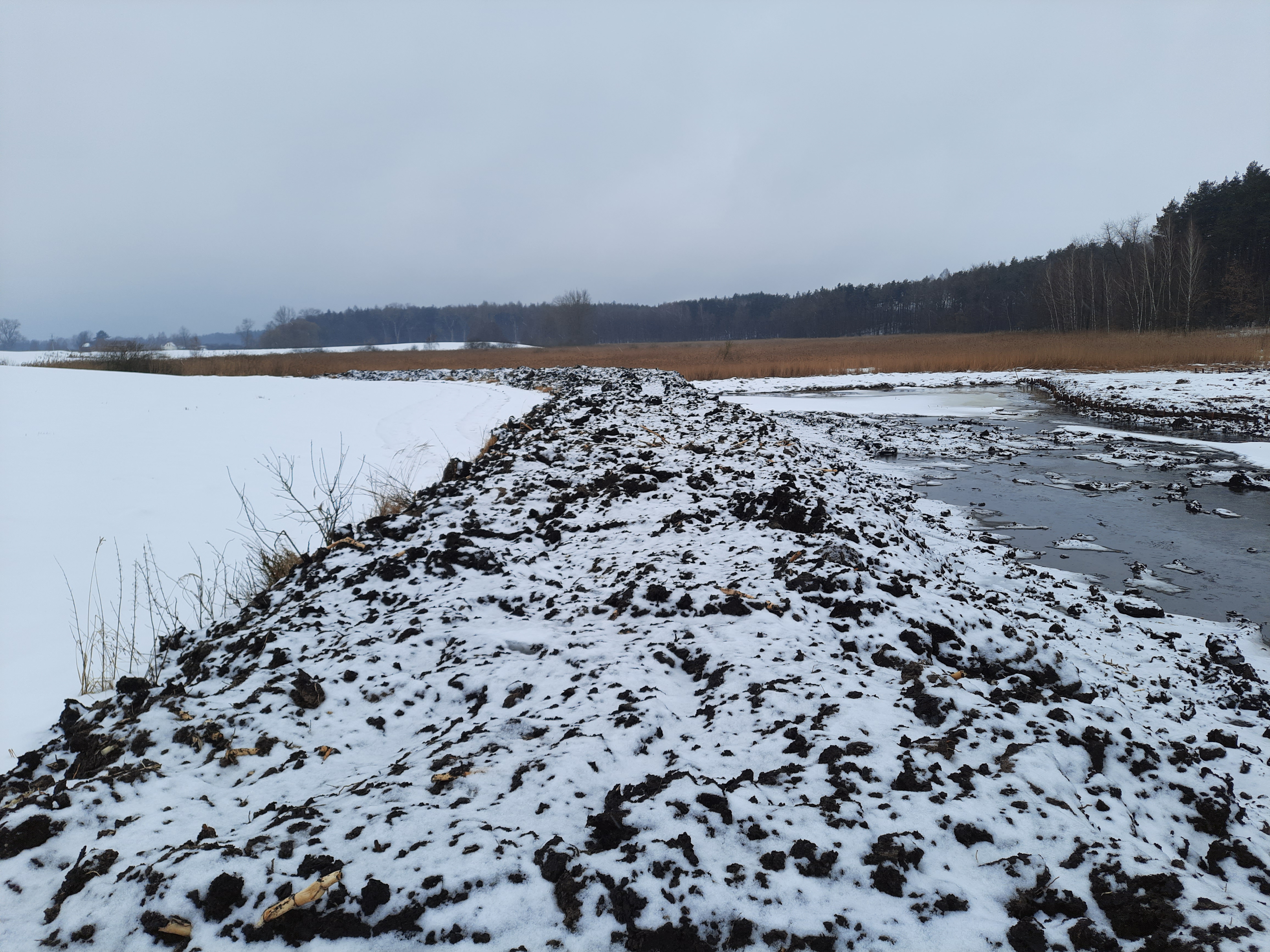 Zakres prac obejmuje również zabezpieczenie grobli siatką przeciw bobrom z drutu powlekanego tworzywem. Obszar objęty planowanym przedsięwzięciem jest zagospodarowany w części projektowanej przebudowy. Projektowane obiekty usytuowane są na śródleśnym rowie melioracyjnym o zmiennej głębokości. W linii rowu funkcjonują istniejące rozlewiska – zbiorniki wodne o powierzchni łącznej około 5 ha.