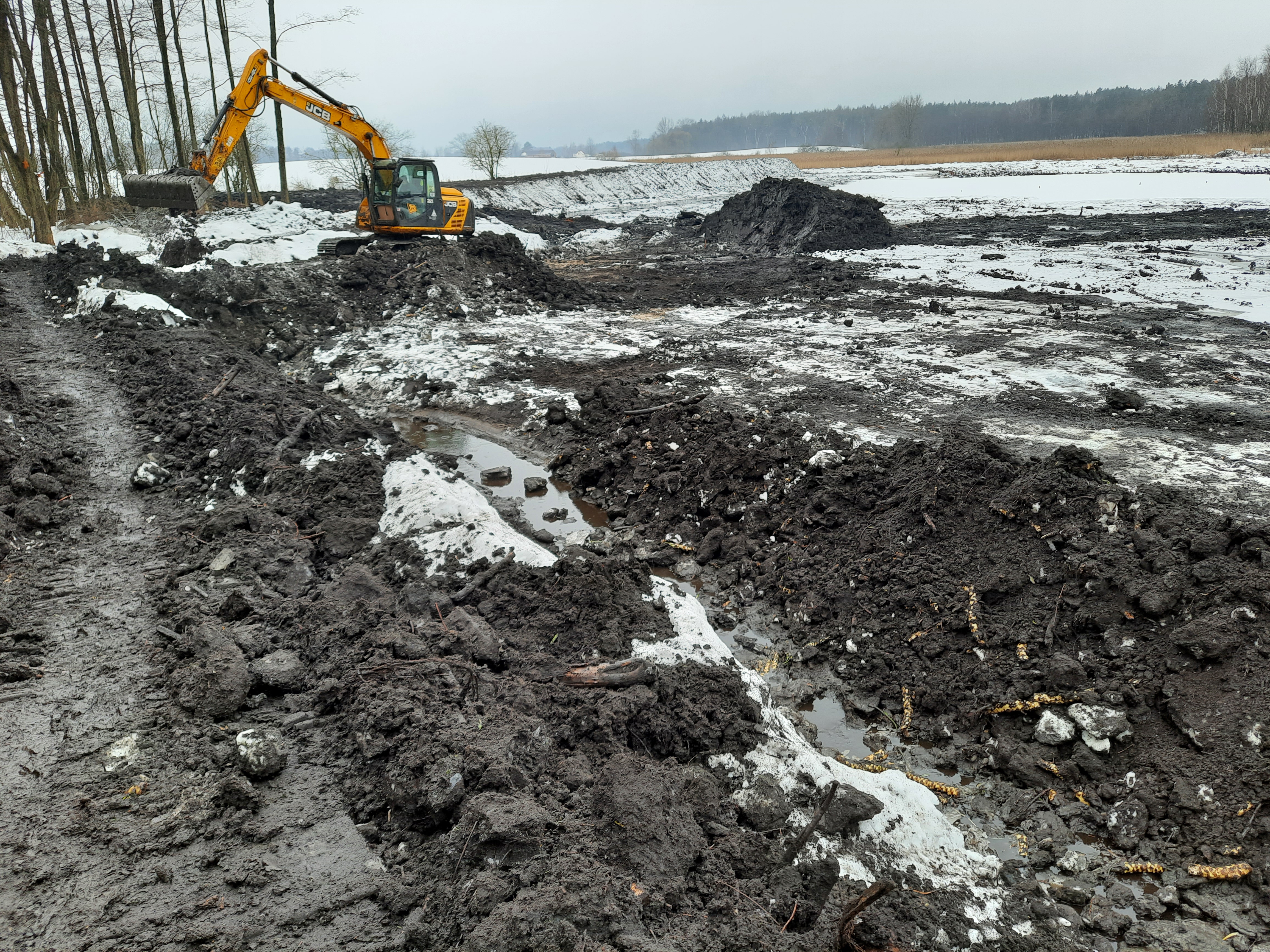 Zakres prac obejmuje również zabezpieczenie grobli siatką przeciw bobrom z drutu powlekanego tworzywem. Obszar objęty planowanym przedsięwzięciem jest zagospodarowany w części projektowanej przebudowy. Projektowane obiekty usytuowane są na śródleśnym rowie melioracyjnym o zmiennej głębokości. W linii rowu funkcjonują istniejące rozlewiska – zbiorniki wodne o powierzchni łącznej około 5 ha.