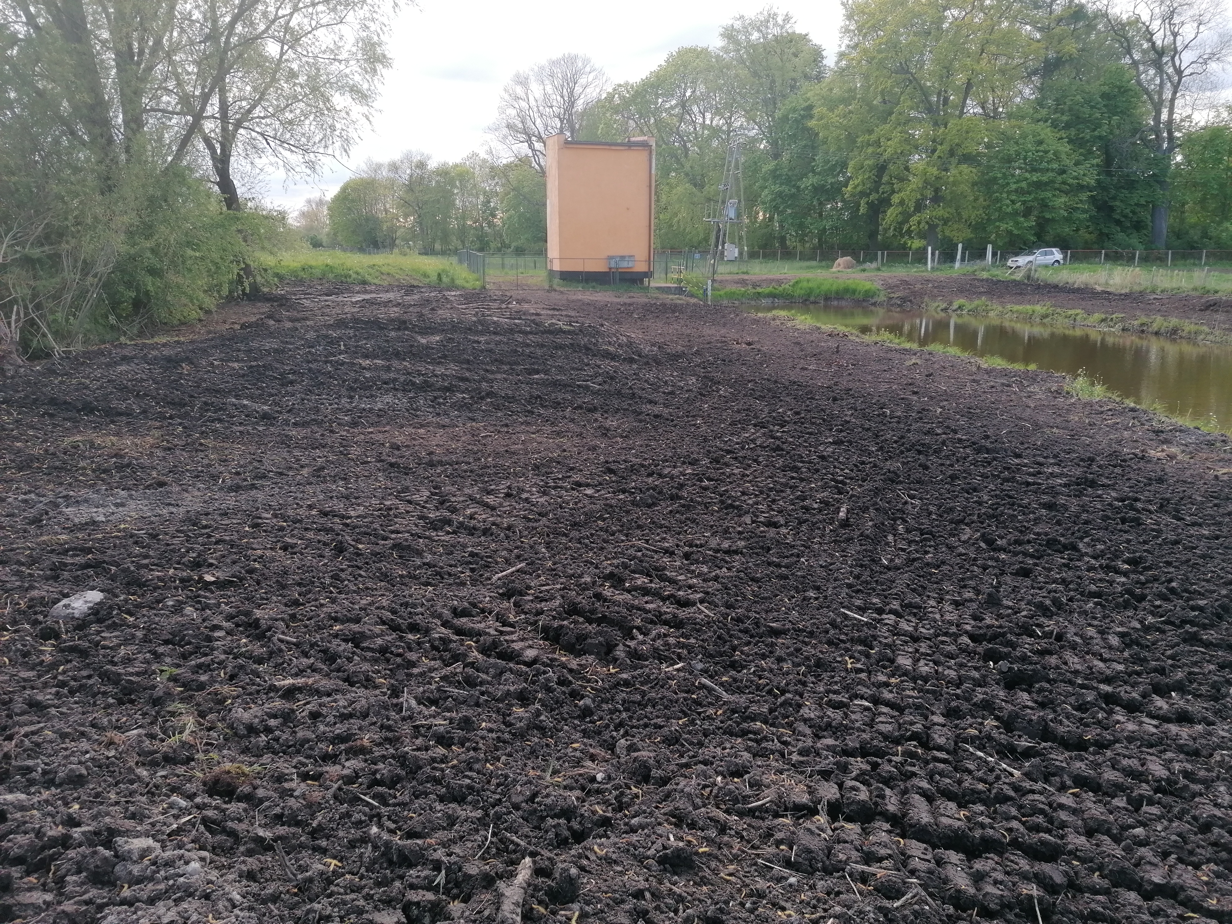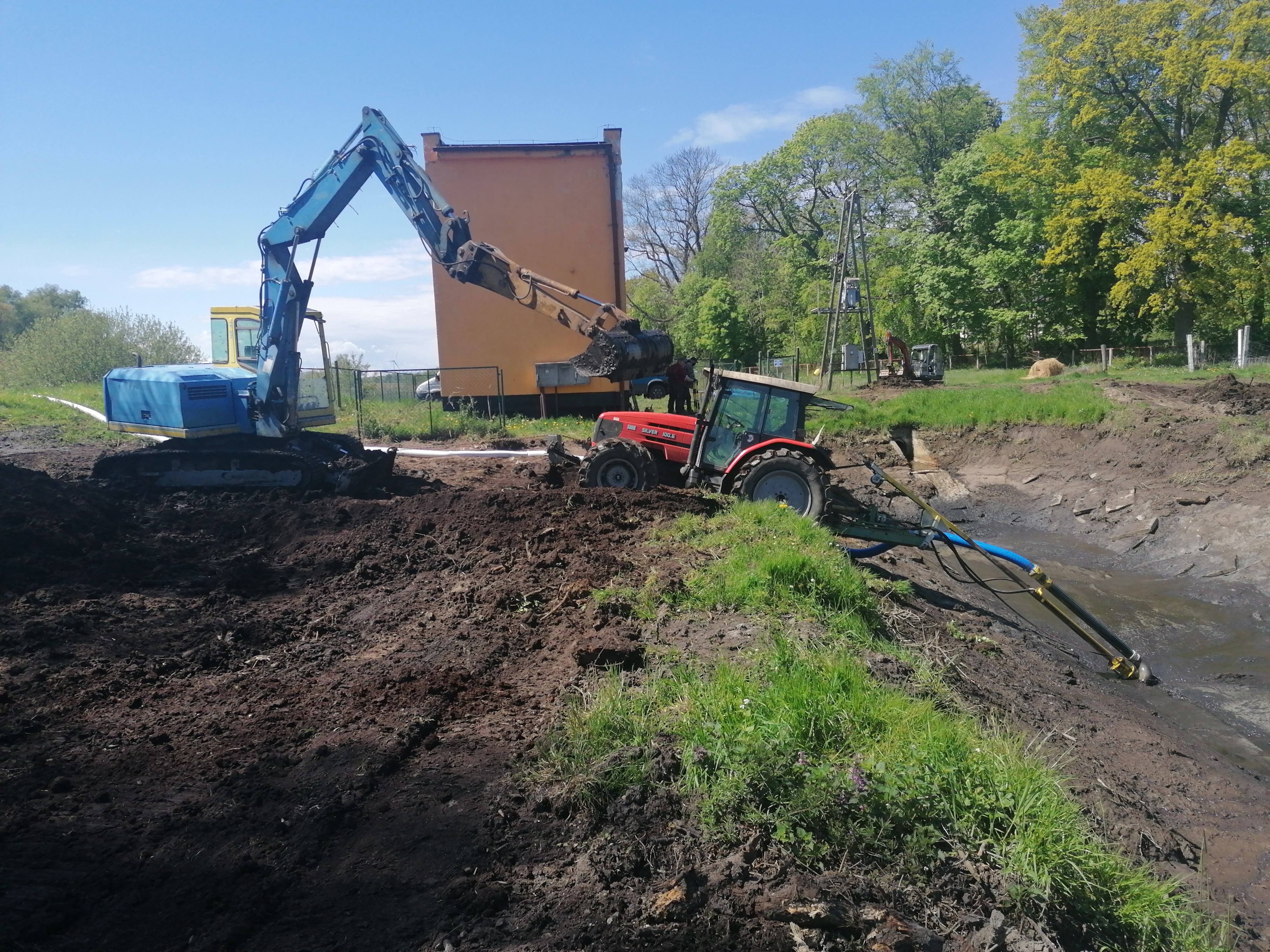 Odmulenie zbiornika pompowego wraz z rozplantowaniem urobku i wykonaniem zagospodarowania terenu na terenie przynależnym do przepompowni.